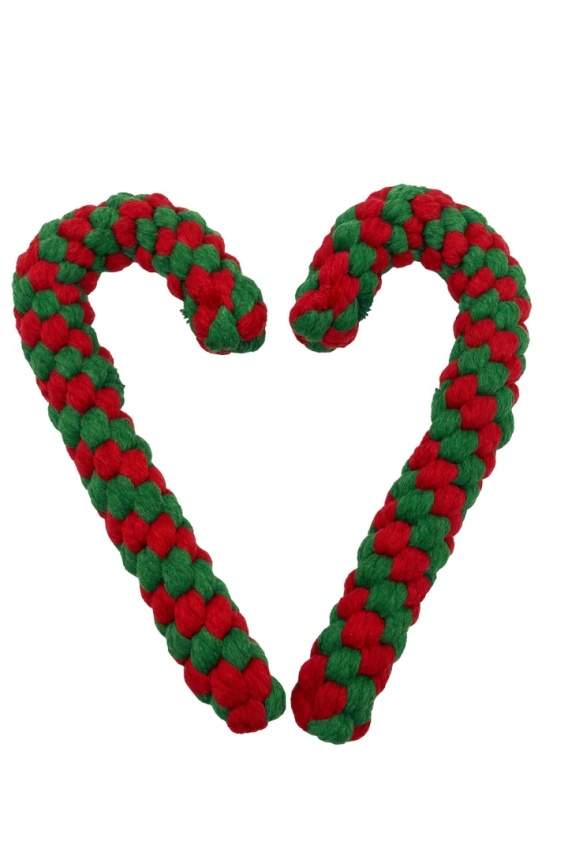 Urocza świąteczna zabawka dla psa w kształcie cukrowej laski, wykonana z wyjątkowo trwałego, gęsto plecionego sznura bawełnianego w kolorach czerwonym, zielonym i białym. Idealna do gryzienia, aportowania oraz przeciągania — świetna zarówno dla małych, jak i średnich psiaków.