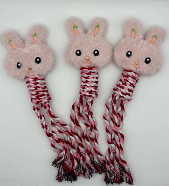 Poznaj naszą uroczą serię pluszowo-sznurowych zabawek dla psów — dostępnych w czterech wyjątkowych wersjach: wesoła Myszka, mięciutki Króliczek, pogodna Małpka i słodziutka Łapka. Każda z nich ma wbudowaną piszczałkę, która pobudza instynkt zabawy i przyciąga uwagę psa na długie godziny!