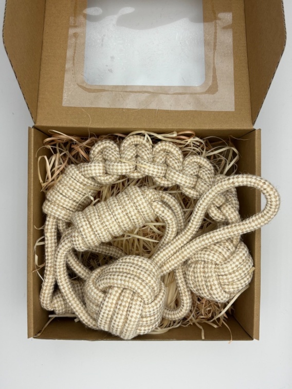 Naturalny Zestaw Sznurowych Zabawek dla Psa – 3 Elementy | Kolor Beige | W Prezentowym Pudełku